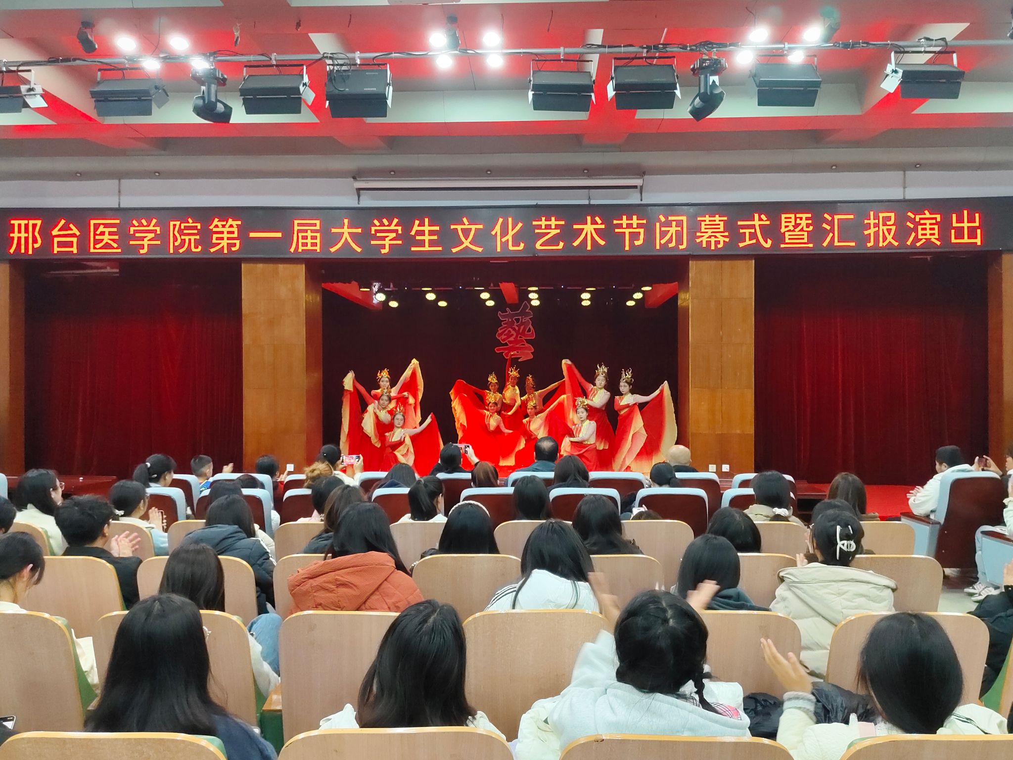 闭幕式在临床医学系合唱团庄严激昂的大合唱《光荣啊,中国共青团》中拉开帷幕,大学生佑弦舞社的拉丁舞《Toca Toca》热情奔放,瞬间点燃了现场气氛;大学生艺术团郑相固、王韵尧带来的歌曲《风吹麦浪》如一阵清风,让观众陶醉在这片金色麦浪中;艺术部的舞蹈串烧《灵》《长安十二时辰》《新疆舞》《万蝶振翅》融合了多种历史元素,带领观众穿越古今,领略中华文化独特魅力;大学生广播站的配音秀别出心裁,用声音塑造了一个个生动角色;大学生艺术团、中医系、临床医学系组合乐队带来的《偏爱》活力四射,架子鼓、电贝司等乐器碰撞出激情火花;大学生佑弦舞社的热舞《APT》展现了青春的烂漫与朝气;大学生青年志愿者协会的手势舞《一起向未来》诠释“奉献、友爱、互助、进步”的志愿服务精神,传递对未来的美好憧憬;大学生艺术团刘康言的独唱《至少还有你》情感真挚,动人心弦;大学生佑弦舞社的舞蹈《领航》激昂澎湃,表达了对祖国的热爱与对未来的美好憧憬。闭幕式在优美的旋律中画上了圆满句号。