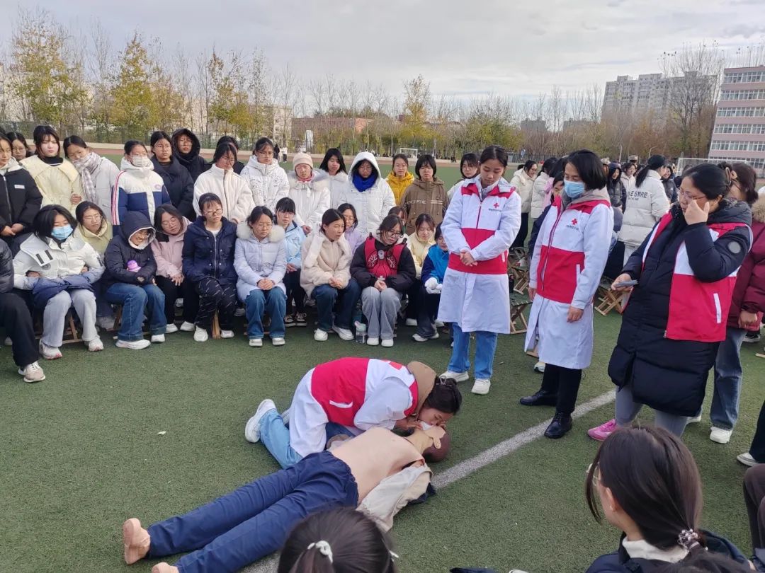 为强化学生急救意识,提高学生在突发、意外事件中的自救互救能力,11月26日,临床医学系联合“一站式”学生社区在钢铁路校区操场开展了急救技能培训,936名2024级新生参加。