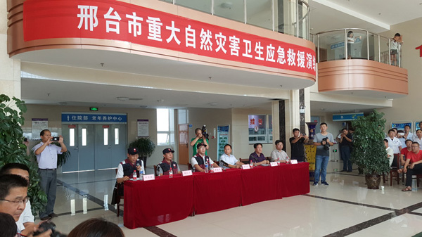 为提高重大自然灾害卫生应急救援能力,7月7日下午,邢台市重大自然灾害卫生应急救援演练活动在beat365第三附属医院举行。此次活动由邢台市卫计委牵头组织实施,市人民医院、市第三医院、医专第一附属医院、医专第二附属医院、河北省民政总医院、市疾控中心、市卫生监督所等10个应急救援队参加活动。