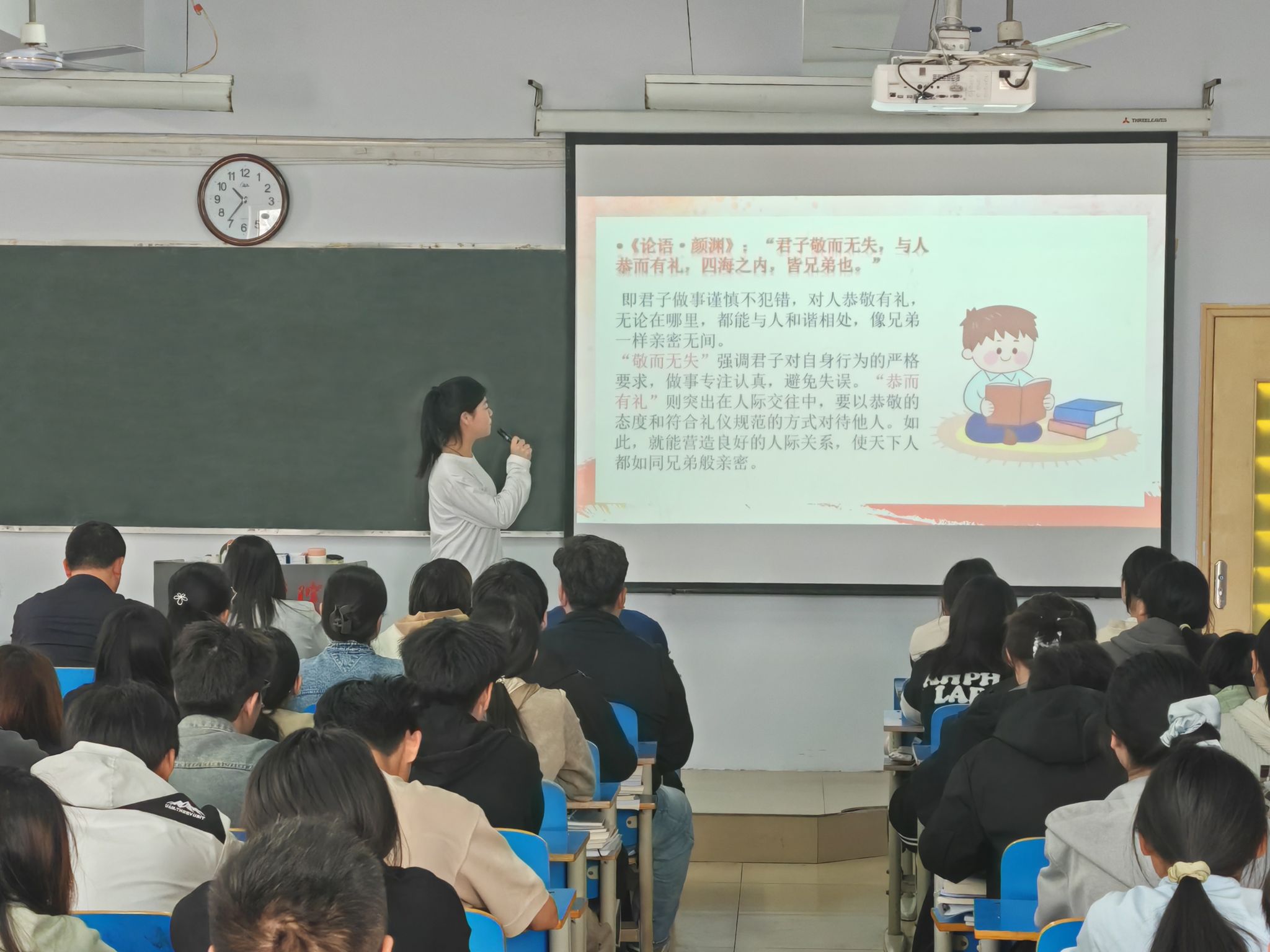 在诵经典环节,各讲堂分别诵读了《礼记·礼运》《古今医统大全》《荀子·修身》《论语·颜渊》《大医精诚》等文章,汲取传统文化精髓,弘扬传统道德风尚,引导师生积极践行文明理念,为构建和谐社会、文明校园贡献力量。