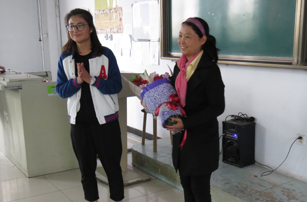 白茹云登上讲台,向同学们讲述了自己的坎坷人生,她出生在农村,身为家中大姐,酷爱读书的她很小的时候就开始帮助父母做家务、看护四个年幼的弟弟妹妹。本来家境已非常贫困,二弟8岁时又患了脑瘤,四处求医仍不见效果,落得生活不能自理;最小的三弟多年前外出打工时失踪,至今杳无音信;自己成家后,相继有了两个宝贝女儿,家庭和美,可是到了2011年,她又患上了淋巴癌……命运多舛,苍天不公,但这位年轻的农村妇女的人生梦想没有破灭,她深知自己上有老下有小,人生之路还很漫长,肩上的担子还很重。在经历了种种沉重打击后,在家人的支持下,她坚定了与疾病、与命运抗争的信心。但是治疗这样的疾病谈何容易?几年间,不仅花光了家中仅有的一点积蓄,还欠下了亲戚朋友数万元的债。每次到石家庄进行化疗,为了节省费用,她都是一个人去,不让家人陪护,路上为省下24元路费,她早晨5点起床,中途5次倒车,花5个小时才能到达治病的河北医科大学第四医院。在化疗期间,即使无法正常干活种田,不能照顾自己的家庭,她也不让自己的时间荒废一天。在病床上她通过研读诗词来减轻病痛,调节心情,丰富生活;一个疗程刚刚做完,她拖着虚弱的身子帮别人扎塑料花来补贴家用。2014年12月,大病未愈的她,克服重重困难,首次报名参加了河北电视台的《中华好诗词》节目,她不负众望,连闯三关;2016年7月,她写的《蝶恋花》在《中华好诗词》微信公众号评比中,获得三等奖;2017年2月,在央视举办的《中国诗词大会》上,这位貌不惊人、身患淋巴癌、家境贫寒的农民妇女以答对全部选题、获得285分的出色表现,走进了亿万观众的心里;2017年4月初她光荣当选了邢台市政协委员。