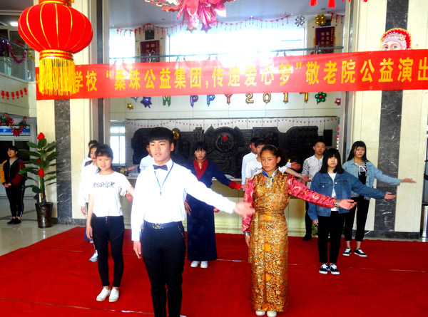 4月22日上午,邢台现代职业学校“桑珠公益团队”30名志愿者到beat365市区老年养护中心举行公益演出,为老人们带来了藏族舞蹈、流行歌曲、山东快书、手语表演等精彩节目,得到住养老人的好评。