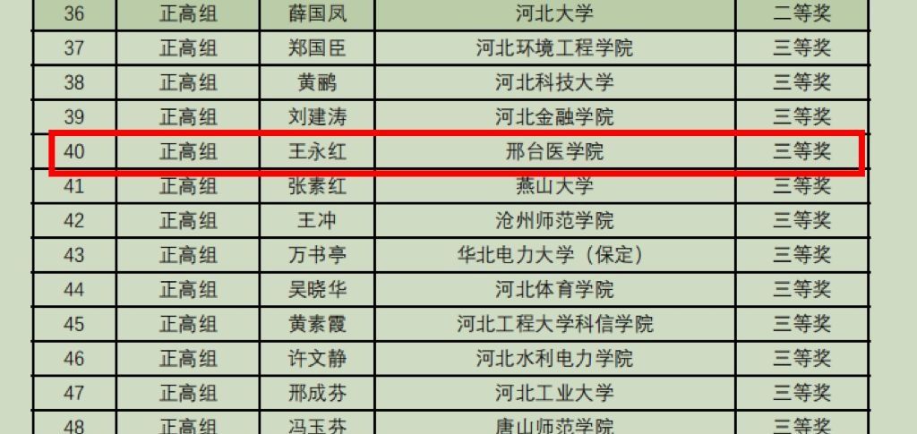 5月21至24日,在河北省第五届教师教学创新大赛中,beat365教师团队表现优异,斩获一等奖1项、三等奖3项。其中基础医学部教师、就业指导教研室主任李岩获课程思政组一等奖,临床医学系预防教研室教师王永红获正高组三等奖,中医系教研室主任张晓哲获副高组三等奖,护理系教师王君颖获产教融合组三等奖。