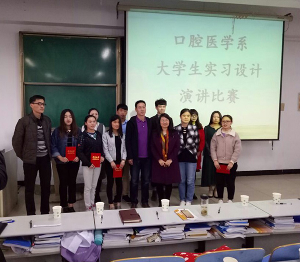 3月16日下午,口腔医学系在2016级普口2班举办了2017年“大学生实习设计”演讲比赛,系党总支书记王振敏、副主任王军波及2015级各班辅导员参加活动。