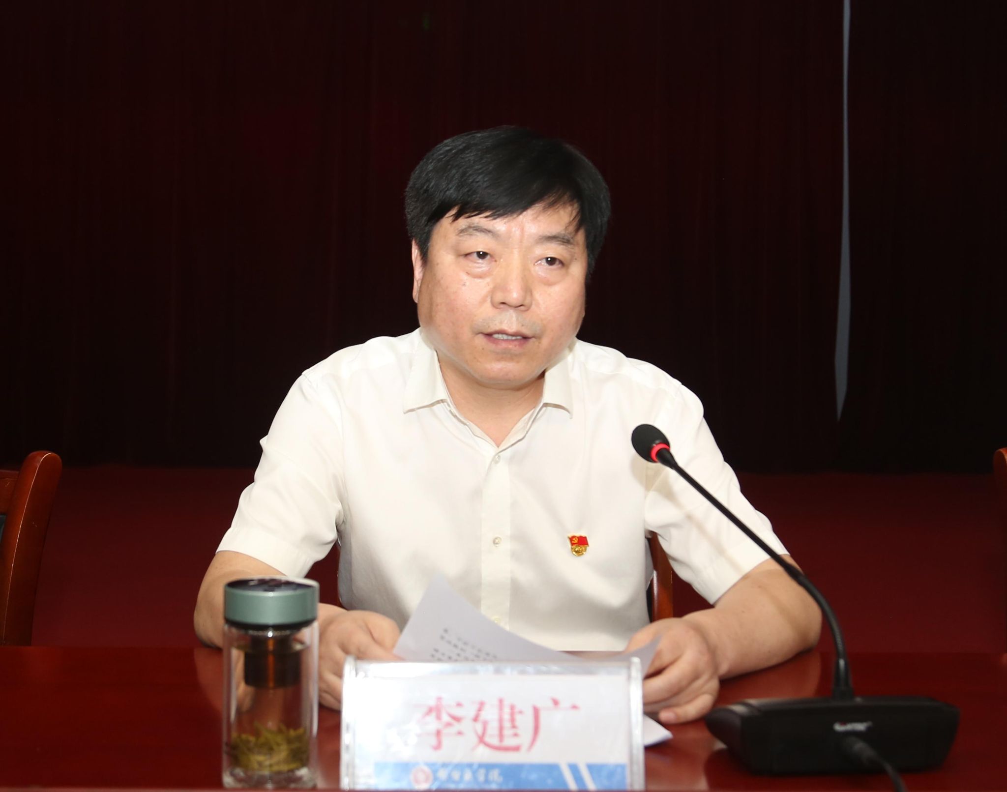 6月27日,党委书记、校长李建广在图书馆学术报告厅就深入贯彻中央八项规定精神学习教育讲专题党课。学校领导班子成员、副科级以上干部、各党总支书记和党支部书记、受表彰的“两优一先”获奖者、党员代表180余人参加会议。会议由党委副书记张志强主持。