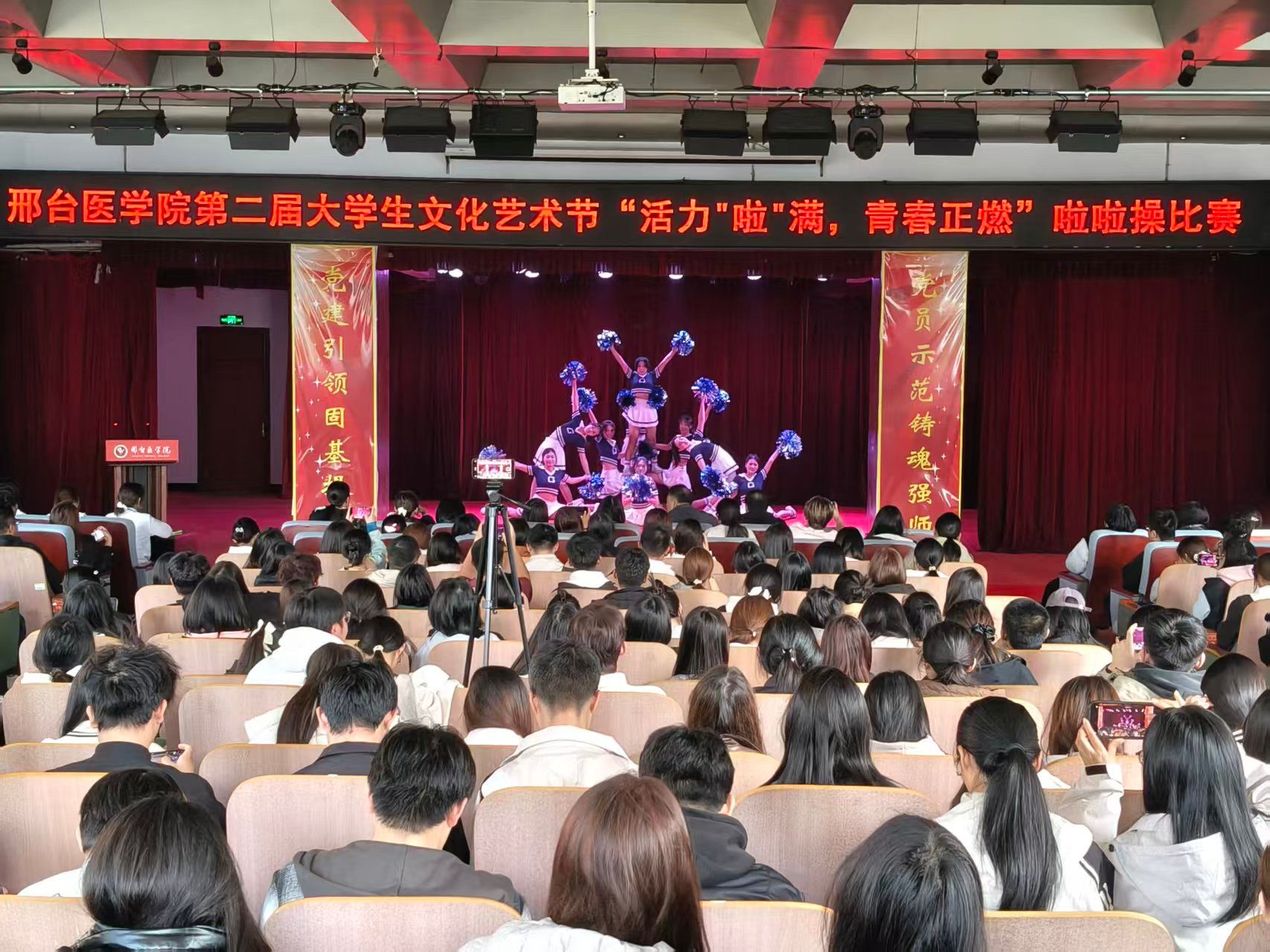 10月28日下午,由团委主办、医疗技术系承办的“活力‘啦’满,青春正燃”啦啦操大赛在学术报告厅举行,团委相关负责同志、各系教师及学生代表共300余人参加。