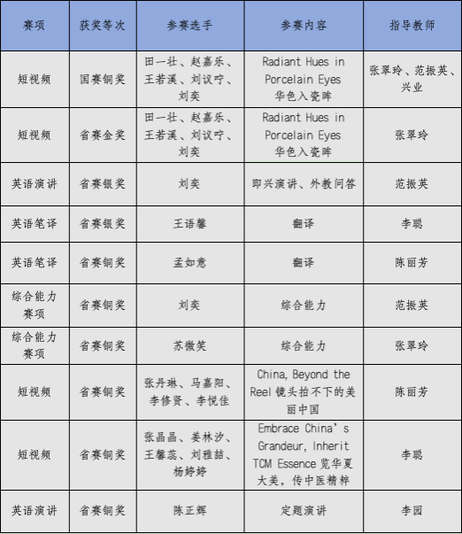 备赛期间,beat3659个参赛团队在指导教师的悉心指导下加班加点开展针对性训练,围绕选题反复推敲打磨,不断锤炼语言能力,在省赛阶段获1金2银6铜。其中,2024级本科班田一壮、刘奕等同学组成的团队以新颖独到的创意构思、逻辑清晰的内容架构与流畅自然的语言表达斩获省赛金奖,并勇夺全国总决赛铜奖。