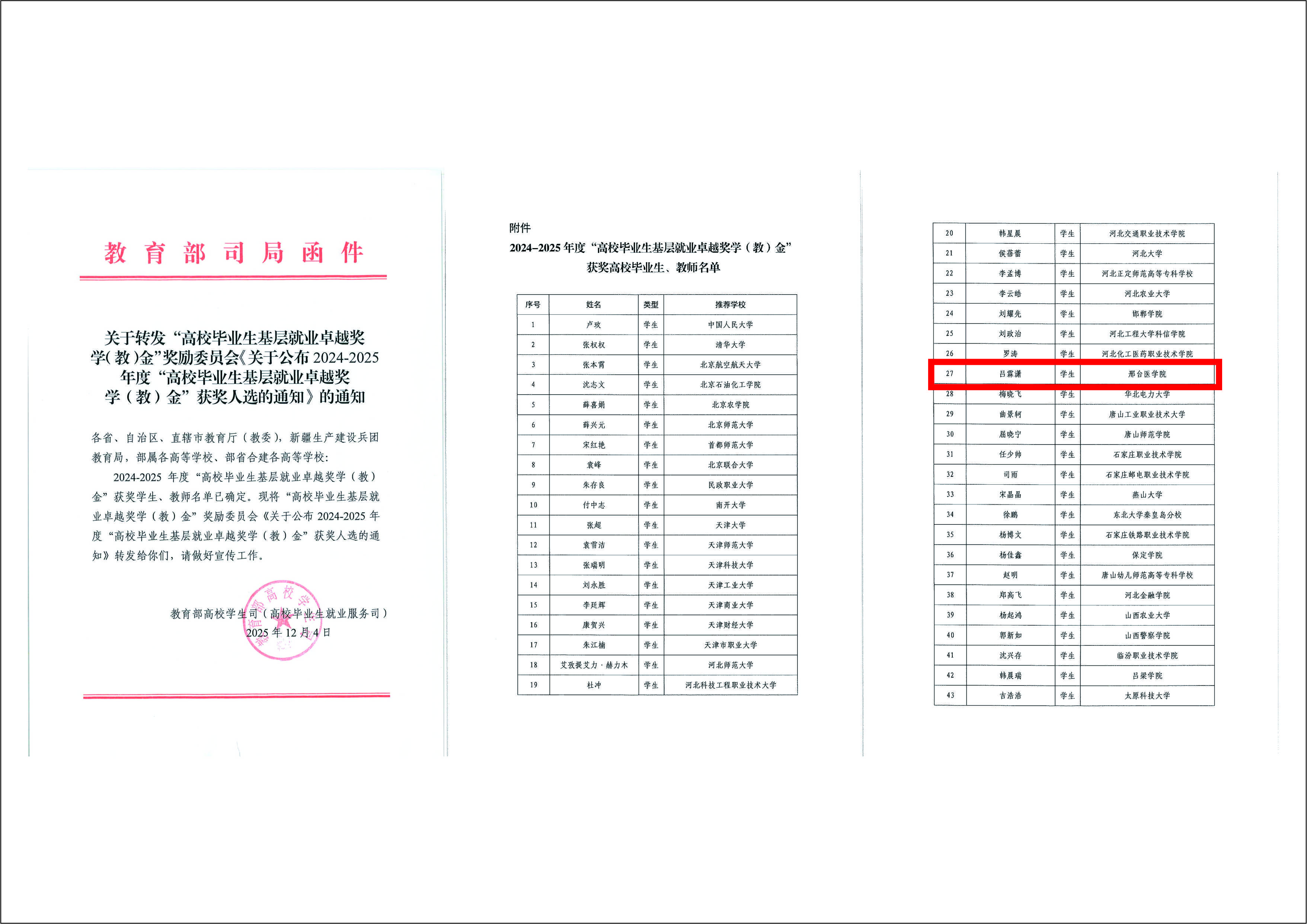 学校始终高度重视毕业生基层就业工作,持续引导鼓励学子投身基层、服务国家需求。此次吕霖潇同学获奖,是对学校人才培养质量与基层就业工作成效的高度认可。