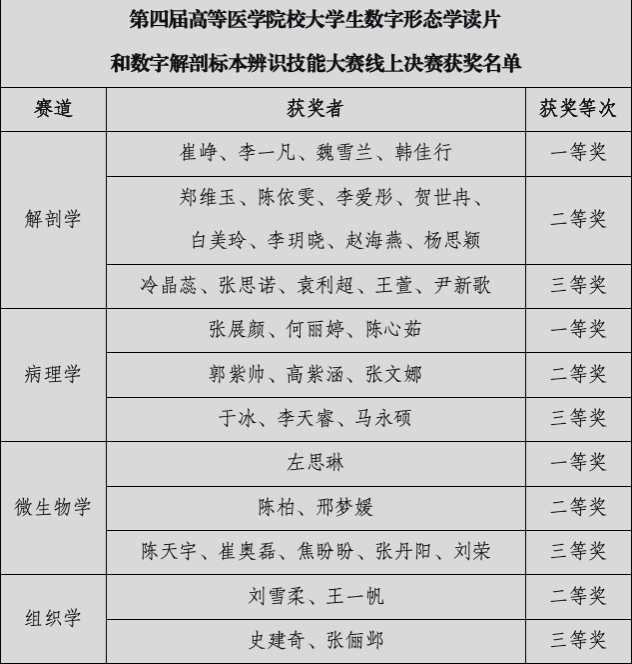 在第四届高等医学院校大学生数字形态学读片和数字解剖标本辨识技能大赛中,beat365学子凭借扎实的专业基础和出色的临场发挥,在线上决赛中,共斩获一等奖8项、二等奖15项、三等奖15项,学校荣获“优秀组织奖”,其中4名学生跻身决赛前1%;在线下总决赛中勇夺2银2铜,并助力学校荣获团体季军。