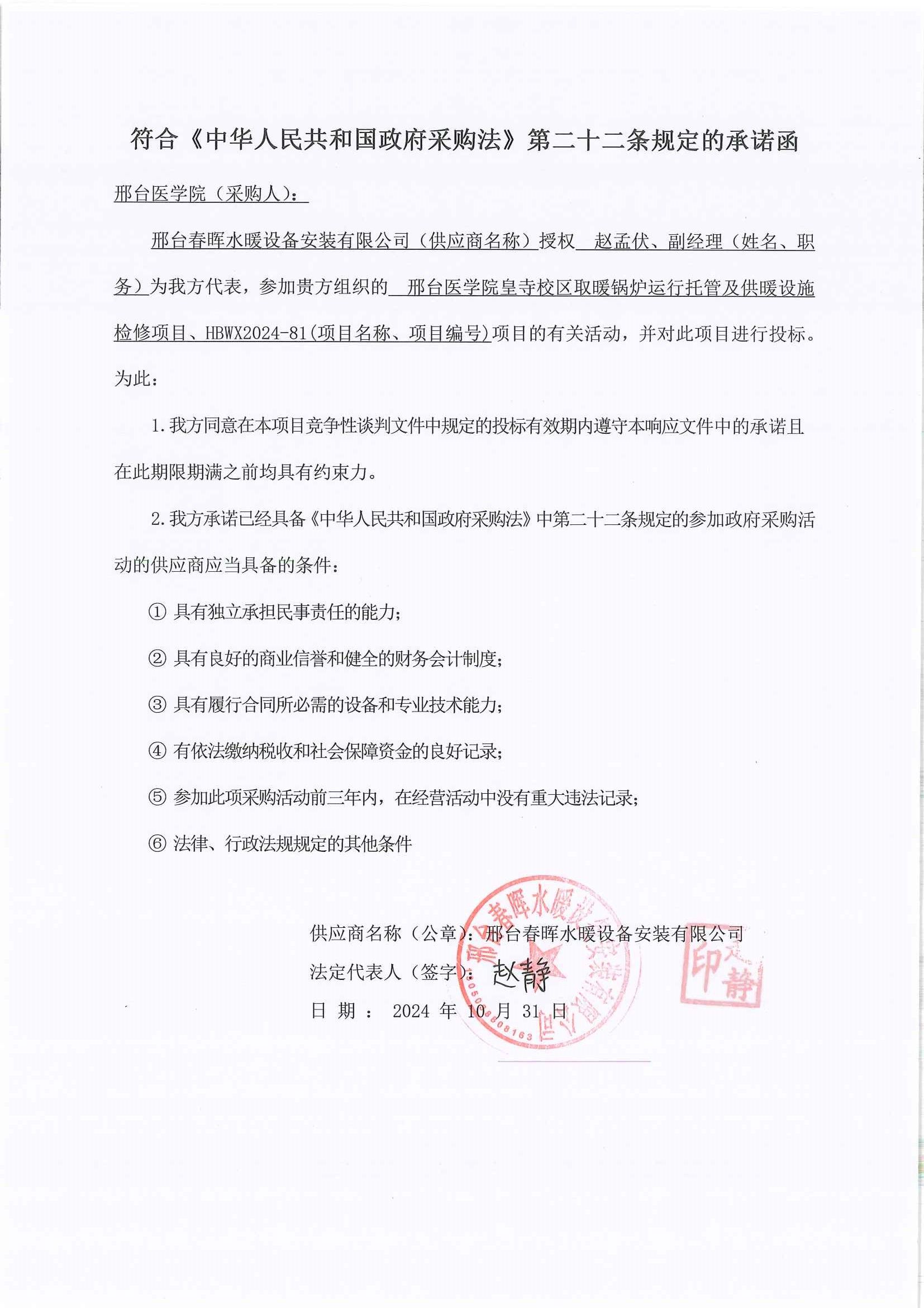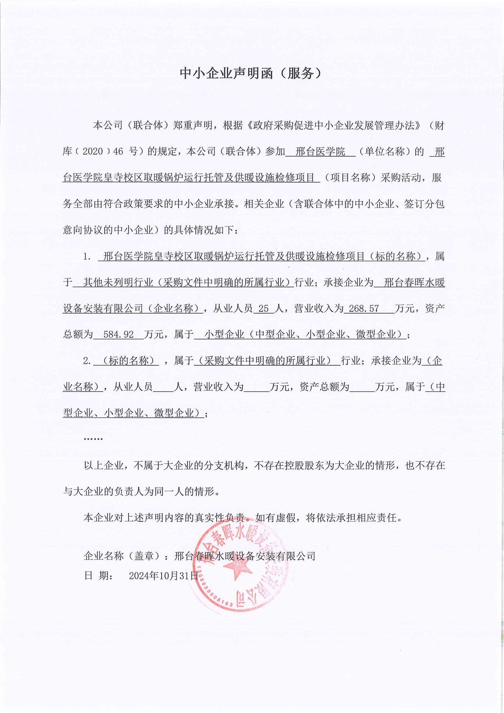 名 称:beat365平台官方网站皇寺校区取暖锅炉运行托管及供暖设施检修项目 服务范围:beat365平台官方网站皇寺校区2台6吨取暖锅炉操作运行托管及其附属设备、室内外供暖系统设施的维修,供暖面积约109195 平方米。 服务要求:beat365平台官方网站皇寺校区2台6吨取暖锅炉操作运行托管及其附属设备、室内外供暖系统设施的维修,供暖面积约109195 平方米。 服务时间:1年(一个采暖季) 服务标准:合格 |