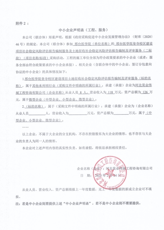 中小企业声明函(二标段)