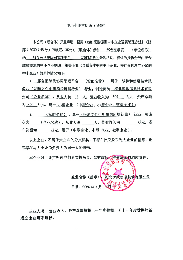 中小企业声明函