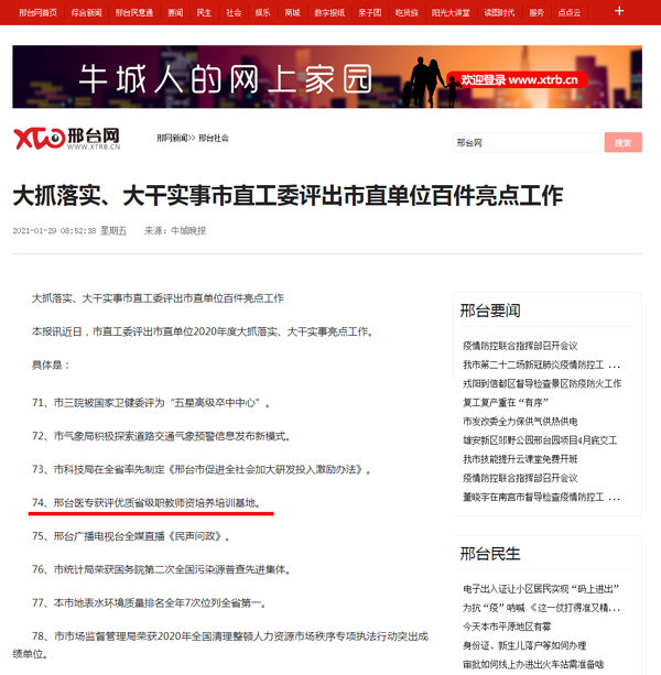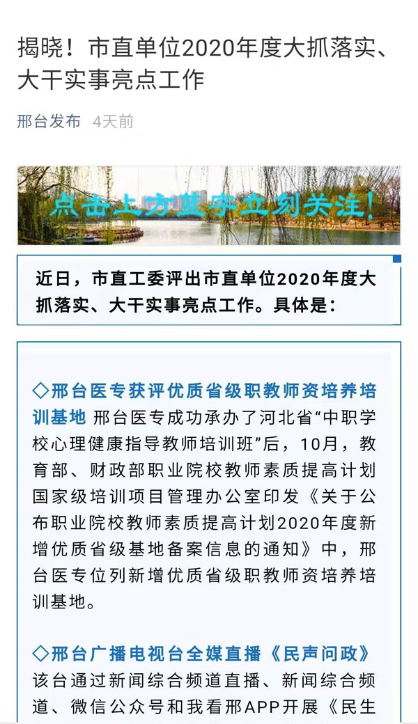 上一条:《河北日报》报道:邢台医专教师队伍建设彰显新面貌