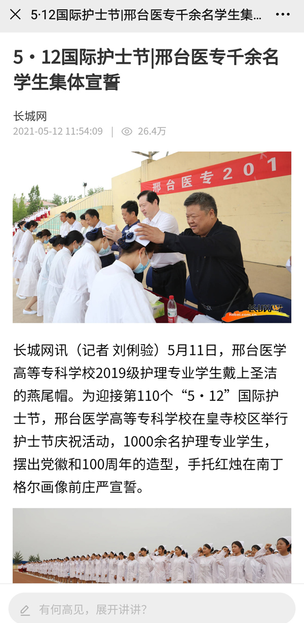 上一条:学习强国邢台学习平台报道“护士节丨致敬身边的‘南丁格尔’”