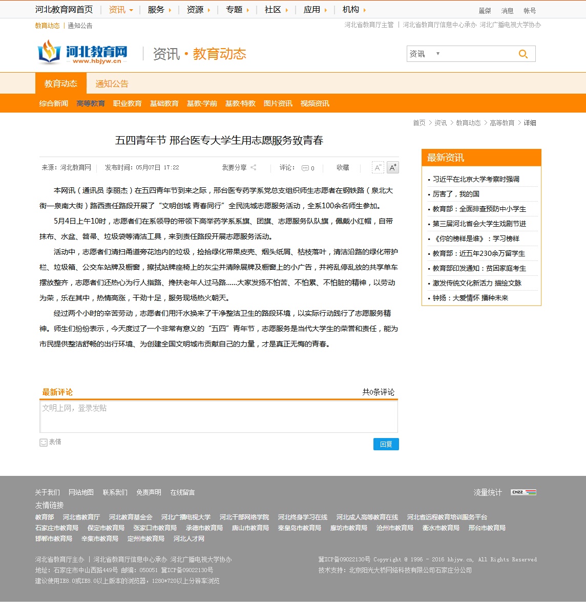上一条:河北教育网报道“邢台医专开展交通志愿劝导服务活动”