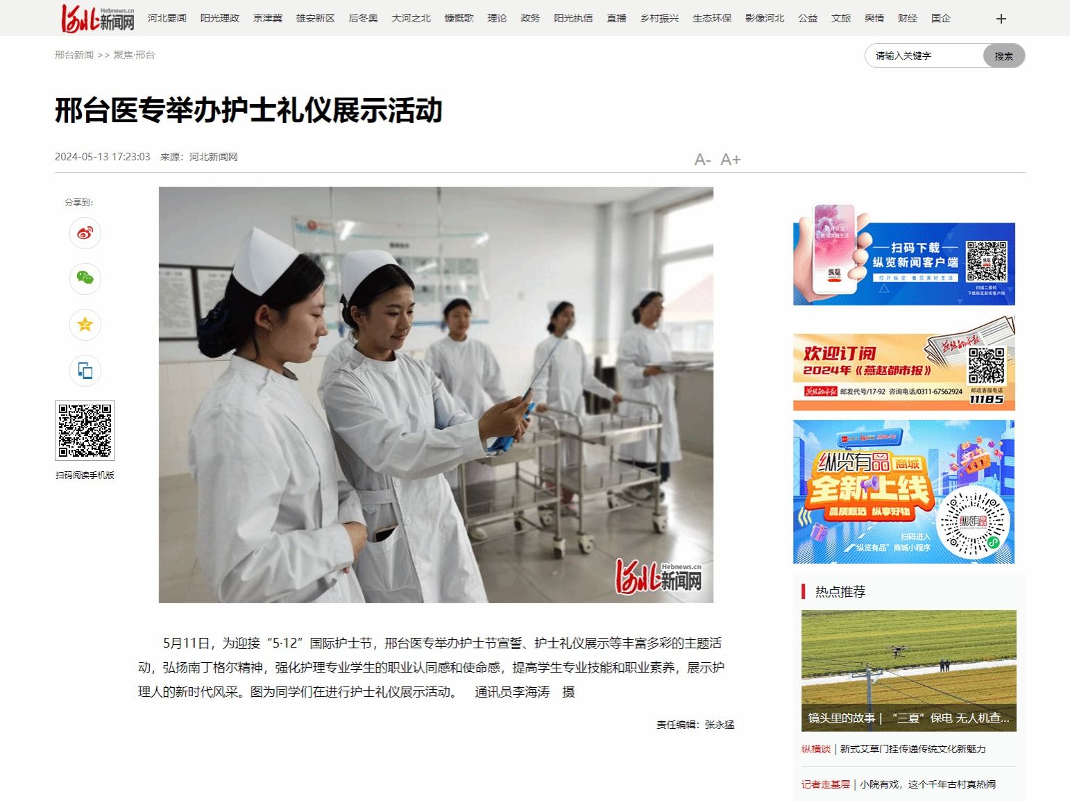 下一条:邢台日报:邢台医专开展护士节宣誓、护士礼仪展示等系列主题活动(图片新闻)