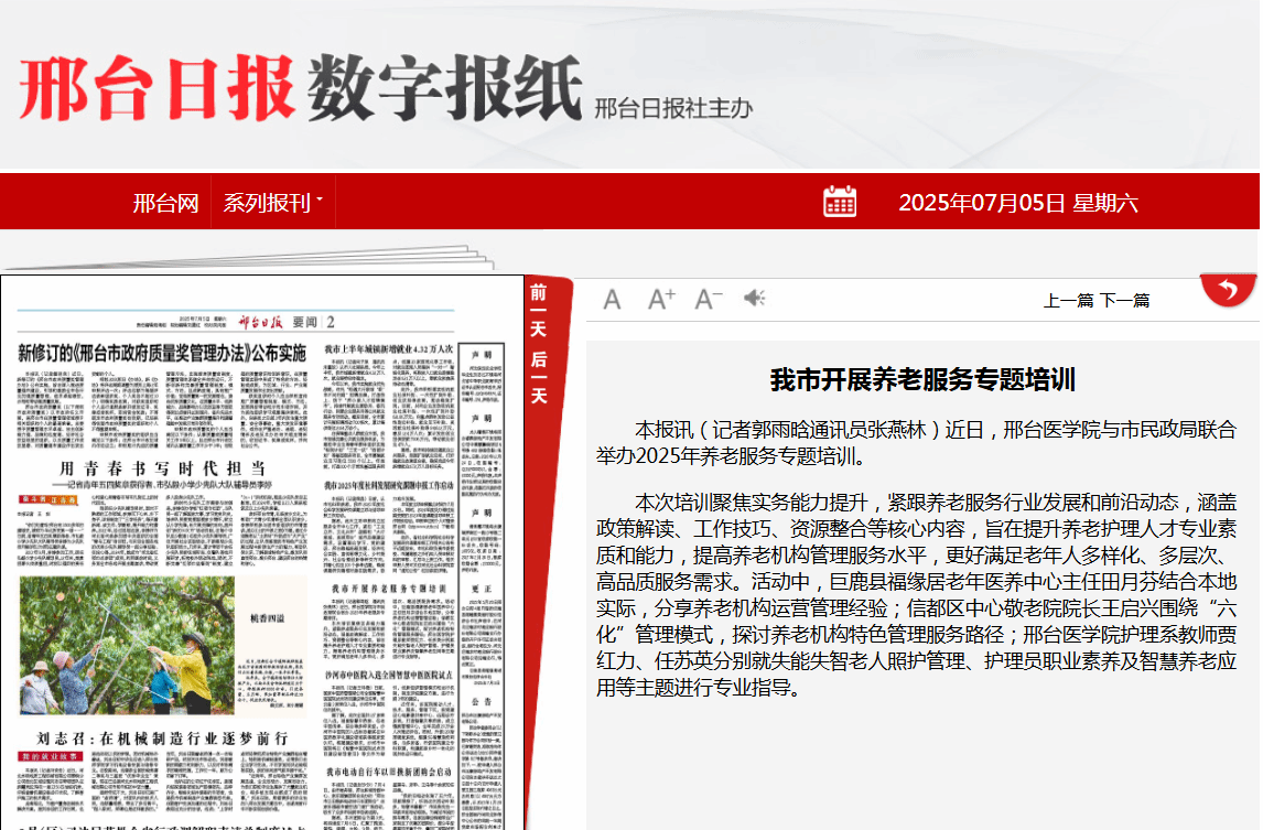 本次培训聚焦实务能力提升,紧跟养老服务行业发展和前沿动态,涵盖政策解读、工作技巧、资源整合等核心内容,旨在提升养老护理人才专业素质和能力,提高养老机构管理服务水平,更好满足老年人多样化、多层次、高品质服务需求。活动中,巨鹿县福缘居老年医养中心主任田月芬结合本地实际,分享养老机构运营管理经验;信都区中心敬老院院长王启兴围绕“六化”管理模式,探讨养老机构特色管理服务路径;beat365平台官方网站护理系教师贾红力、任苏英分别就失能失智老人照护管理、护理员职业素养及智慧养老应用等主题进行专业指导。