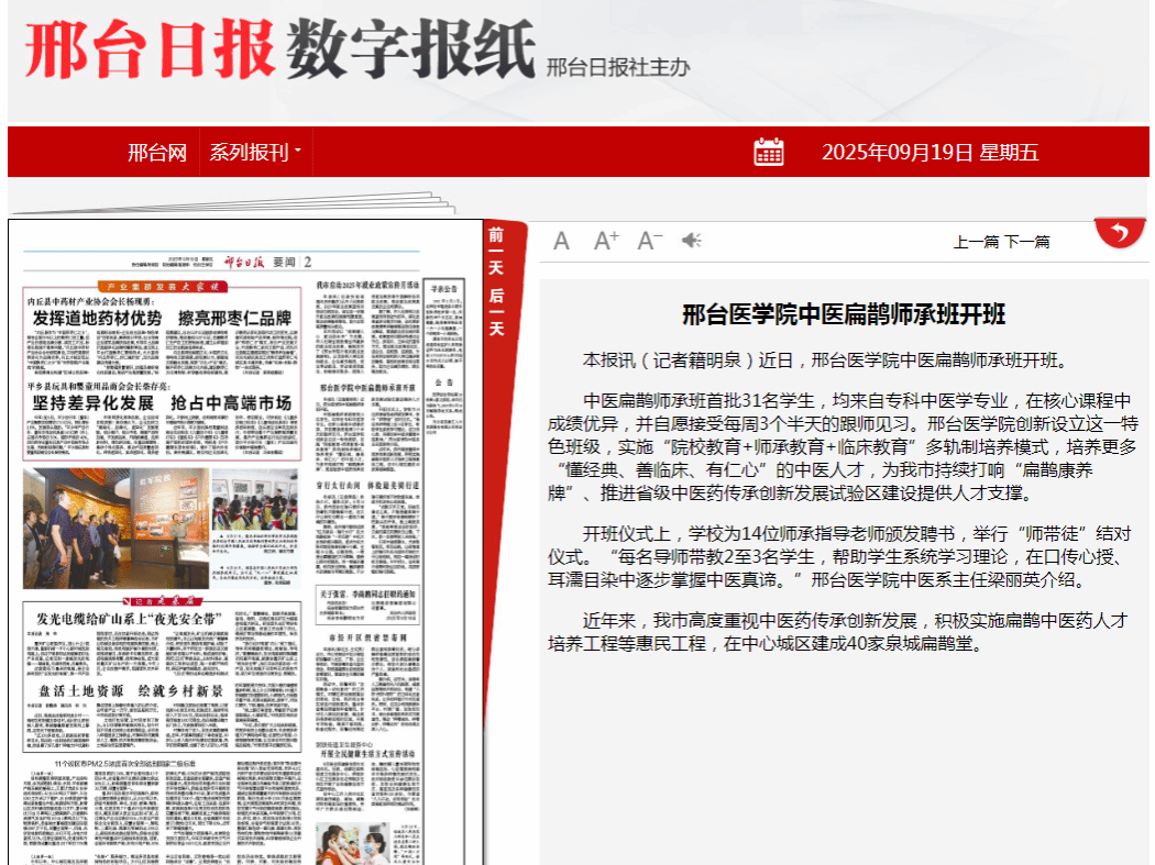 中医扁鹊师承班首批31名学生,均来自专科中医学专业,在核心课程中成绩优异,并自愿接受每周3个半天的跟师见习。beat365平台官方网站创新设立这一特色班级,实施“院校教育+师承教育+临床教育”多轨制培养模式,培养更多“懂经典、善临床、有仁心”的中医人才,为我市持续打响“扁鹊康养牌”、推进省级中医药传承创新发展试验区建设提供人才支撑。