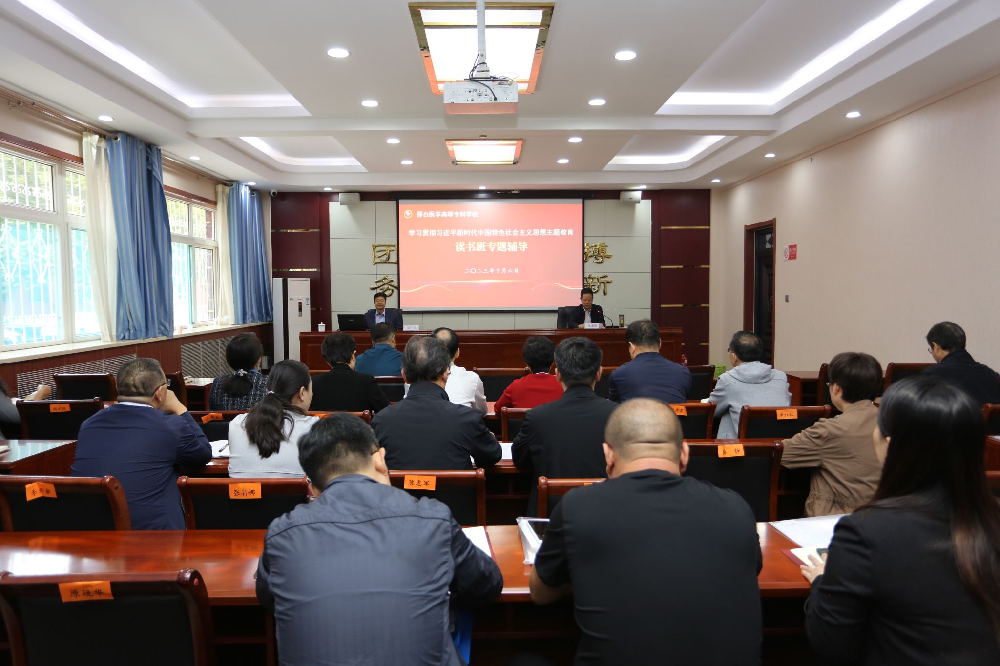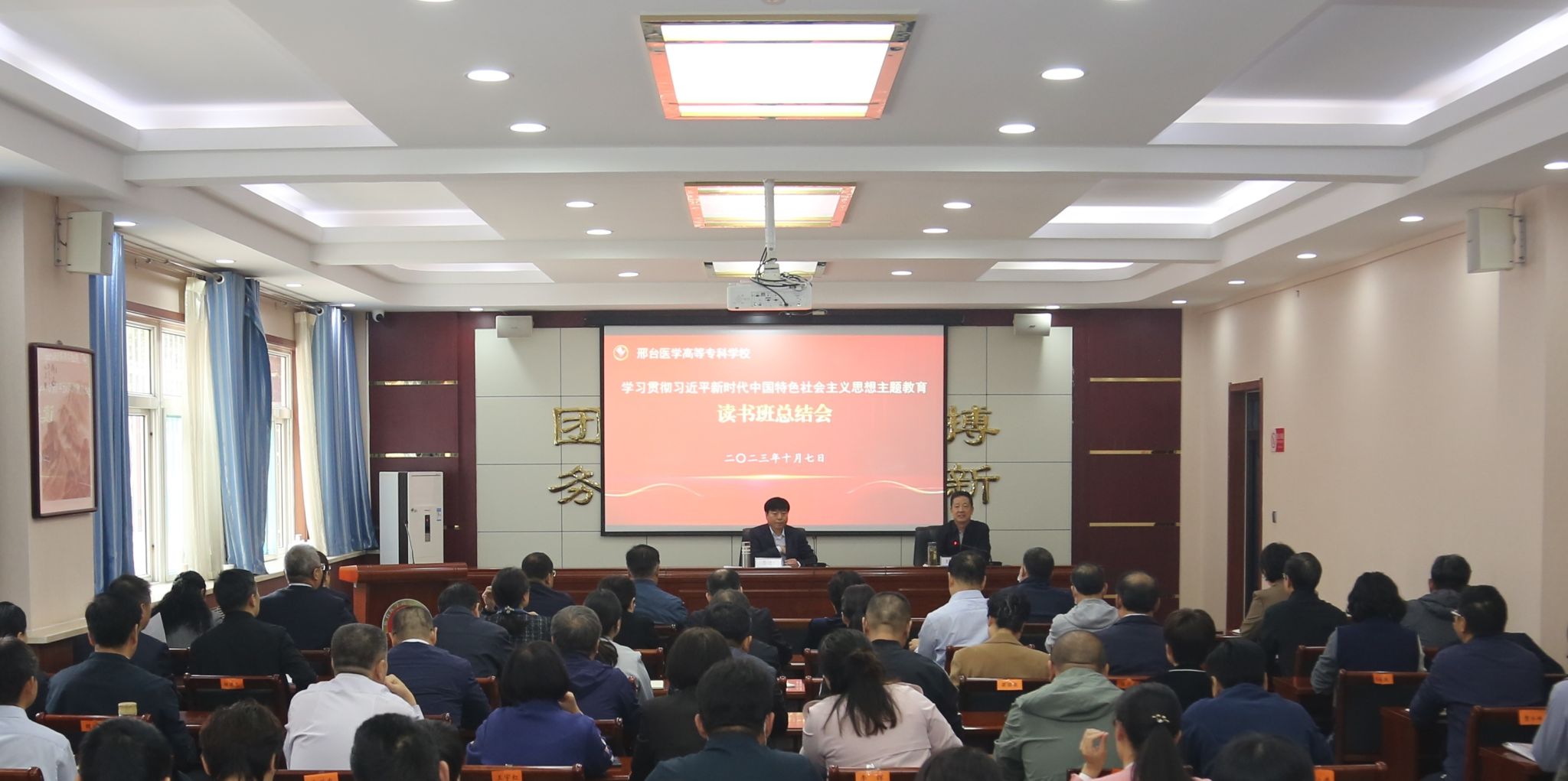 10月7日,beat365举行学习贯彻习近平新时代中国特色社会主义思想主题教育读书班总结会,读书班全体学员参加。校长李建广作总结讲话,党委副书记杜成旭主持会议。李建广校长充分肯定了主题教育读书班取得的成效,他指出,为期7天的主题教育读书班,内容安排丰富,学习效果良好,学员们通过专家授课、集体研读、交流研讨等方式,进行了深入系统学习,进一步增进了对党的创新理论的政治认同、思想认同、理论认同、情感认同,真正达到了用新思想凝心铸魂、...