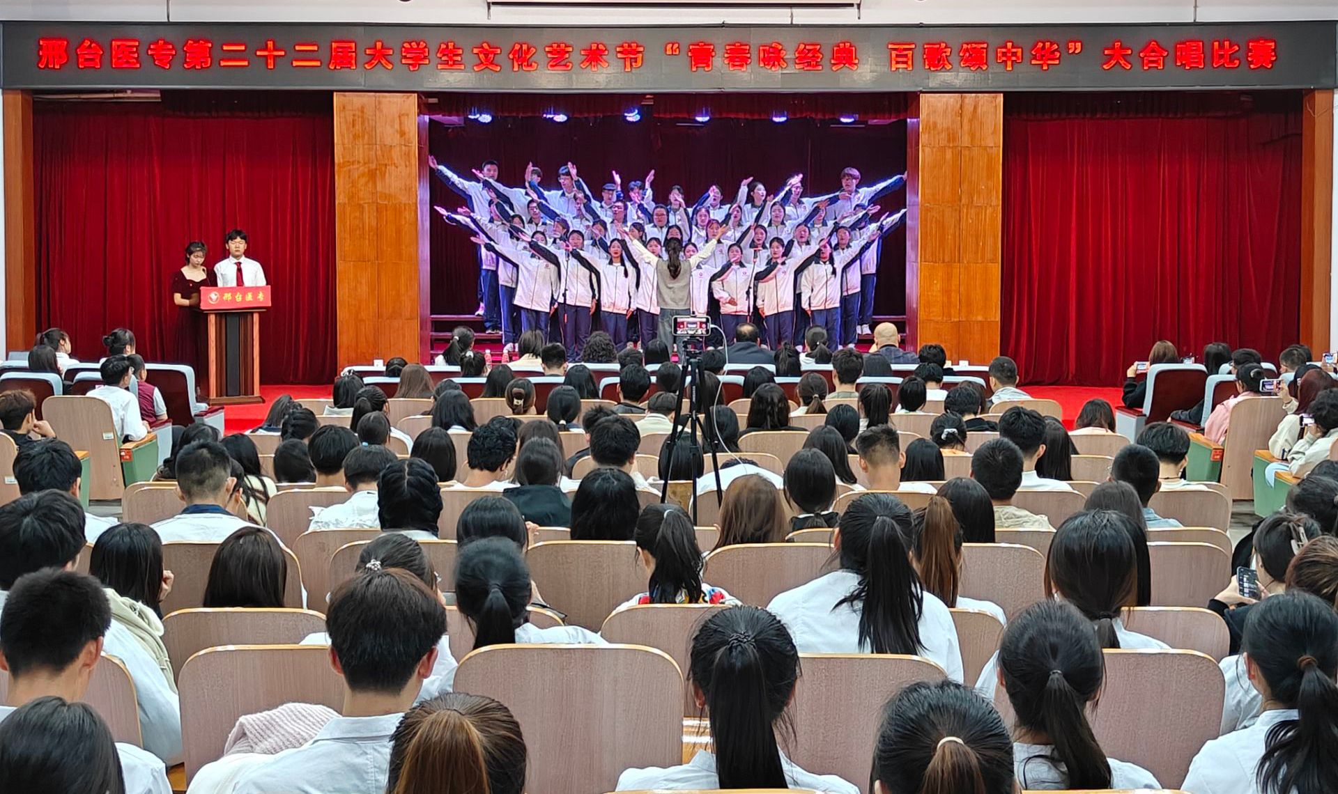 近日,beat365第二十二届大学生文化艺术节开幕式暨“青春咏经典 百歌颂中华”大合唱比赛在学校报告厅隆重举行。团委全体老师,各系团总支书记及学生代表共264人参加。开幕式上,团委高亚楠老师宣读了《关于开展“邢台医专第二十二届大学生文化艺术节”活动的通知》;第二十一届大学生文化艺术节大合唱比赛一等奖团队代表临床医学系索阳阳发言,他号召同学们积极参加校园文化活动,做素质全面、情操高尚的新时代青年。团委副书记杜庆岩在开幕式上对同学们提出三点期望:...