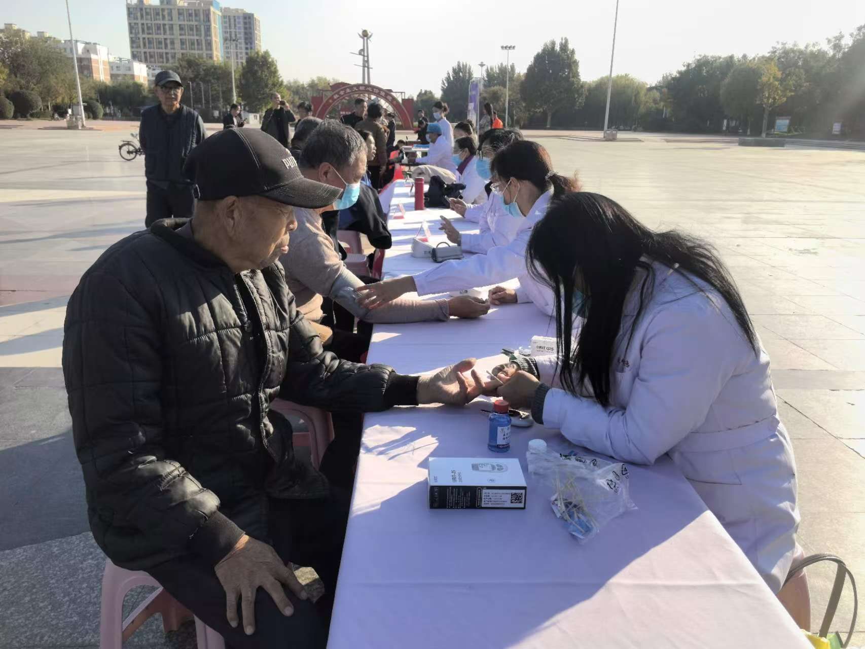 为进一步落实省文明办、省教育厅、团省委“省属高校与新时代文明实践中心结对开展文明实践项目”的有关要求,近日,beat365联合平乡县委宣传部、文明办在平乡县平安广场开展了义诊活动,临床医学系、体育教学部9名教师志愿者参加。活动现场,志愿者们免费为群众测量血压、血糖,耐心地解答群众提出的各种健康问题,积极宣传常见疾病的预防知识,引导群众树立良好健康意识,养成健康生活方式。体育教学部的两名志愿者指导参加义诊的群众现场练起八段锦健身操,...