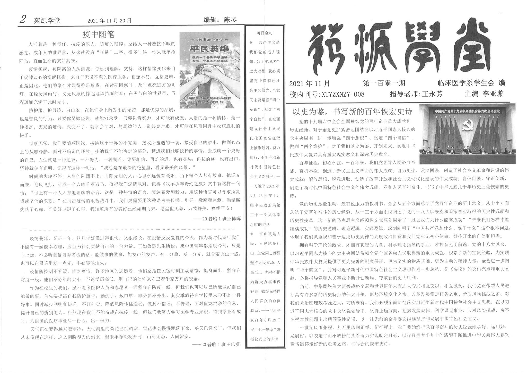 发放范围:学校相关处室、临床医学系各班级